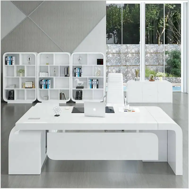 1.6Mtr White Glass Office Desk + Leather chairs-909A