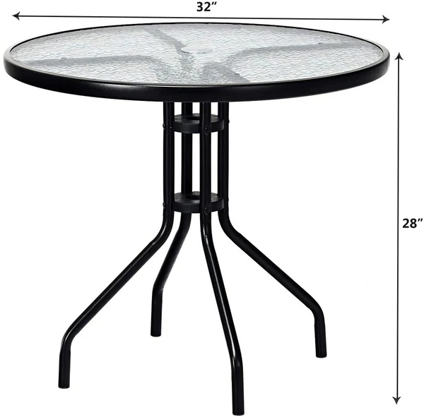 32 inches Outdoor Patio Table + 4 Rattan Chairs