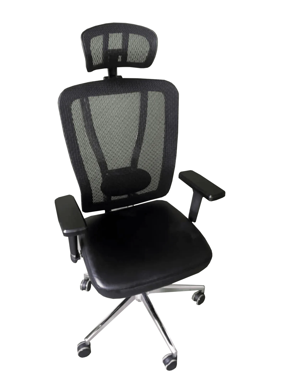 The high-back mesh executive commercial ergonomic chair offers superior lumbar support and breathability. Designed for extended comfort, it features an adjustable height, a sturdy frame, and a professional look, perfect for office environments.