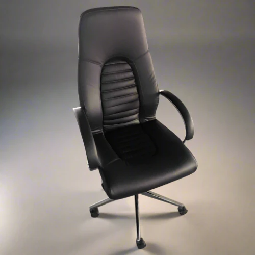 “Director Executive Chair-SS-3930” is a high-back, swivel leather office chair designed for executive and managerial comfort and style, featuring a sleek contemporary design, high-quality durable materials, ergonomic support for long hours, a smooth swivel feature for mobility, and an adjustable height gas-lift mechanism. It offers a comfortable, padded seat and armrests, a synchronized seat and back movement for individualized comfort, and an integrated headrest for correct posture.
