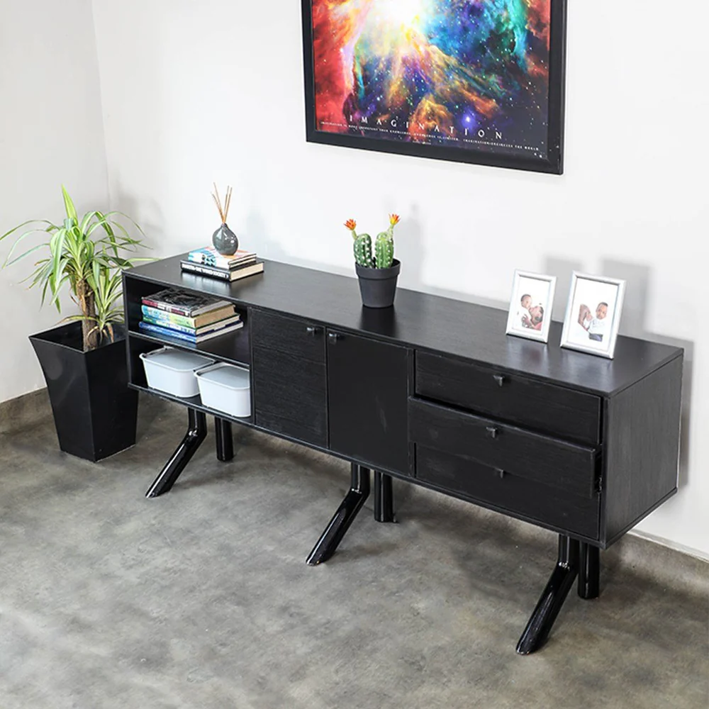 A 5ft Home Office Credenza is a low, wide storage unit, typically with sliding or hinged doors, designed for organizing an office. It provides sleek, minimalist storage for office essentials and can also serve as a stylish display surface, often featuring durable materials like HDF laminate boards, metal leg frames, and modern finishes.