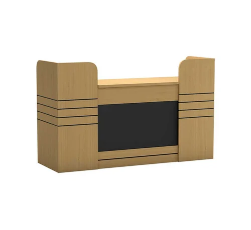 This reception desk is a pivotal element in defining the character of a space, a welcoming gateway that sets the tone for interactions. Its dimensions offer a balance of presence and practicality, creating a focal point without overwhelming the area.