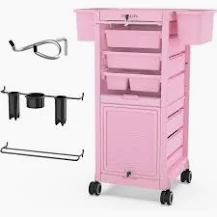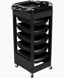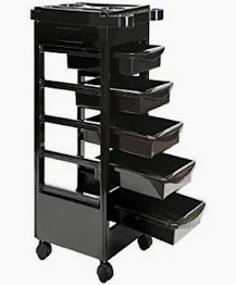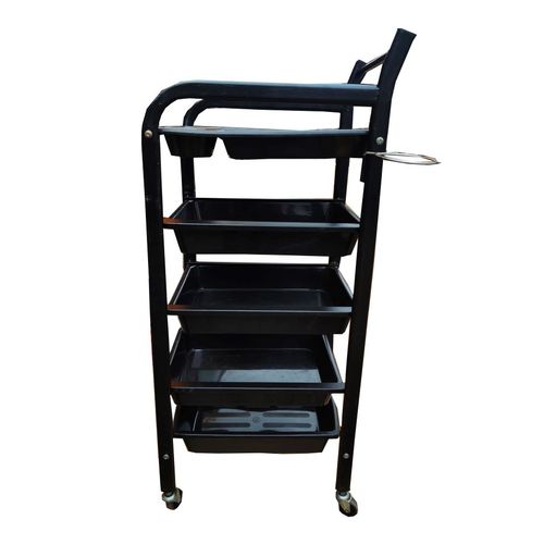 This salon trolley cart features 5 easy pull-out drawers, a top work area and 2 side trays that slide in and out to provide additional storage space. The design with wheels makes it move freely, thus increasing your productivity.