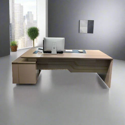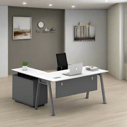 • Brand new 1.6 metre L-Shaped Executive office table with 3-chest mobile drawers and mobile extension side table.