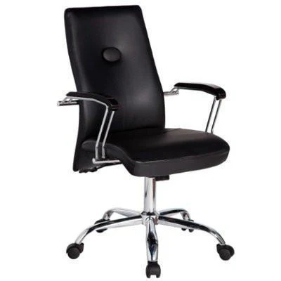 The office chair toll-free is a medium back revolving teller chair with textured fabric upholstery.