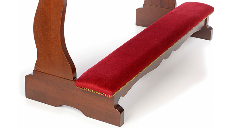 The kneeler can be placed before the tabernacle, an altar, a statue of a saint or a Madonna. Typically, it consists of a supporting surface for the knees, usually padded or covered with a cushion, and a riser on which to lay hands in the act of prayer.